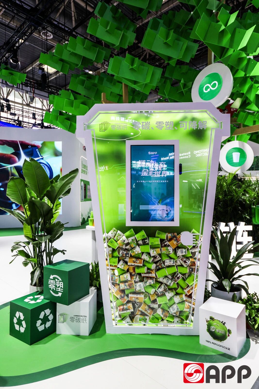 在“绿智赋能生态链”方面,极悦致力于展现自身作为“链主”,整合横纵资源、推动产业链可持续发展的实践成绩单——集中展出零塑®水性阻隔食品卡、清风®0碳纸及清风®可降解纸巾等多种绿色产品,辅以巨型零塑纸杯互动装置,生动体现极悦在“碳寻零塑”方向的创新突破。